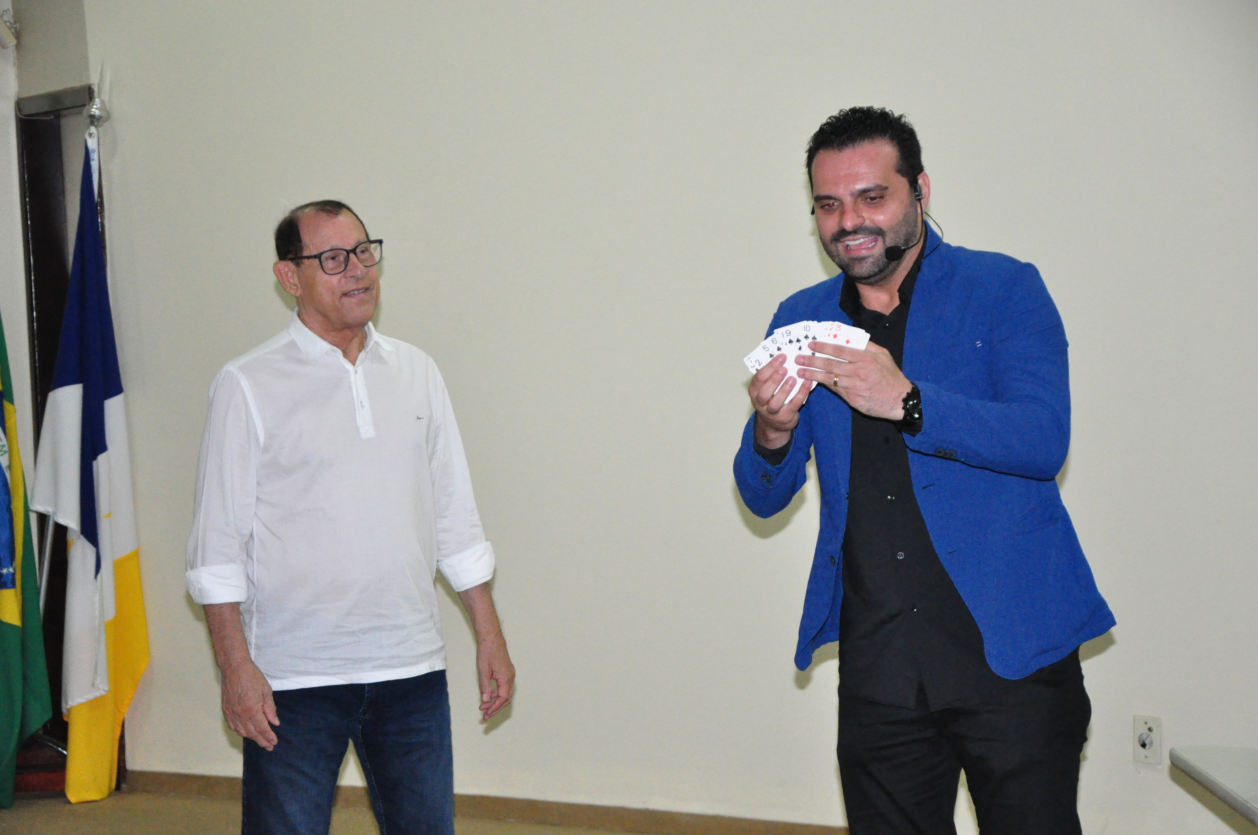 Com o tema o Poder da Integração, o palestrante Vitor Hugo usou de recursos lúdicos, como truques de magia, para demonstrar formas de promover a união, desenvolvimento da empatia e solidariedade entre os membros de uma equipe.